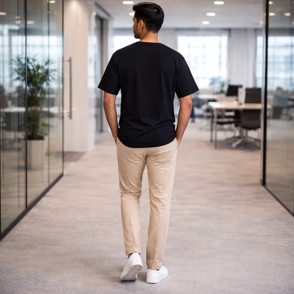 The lycra ribbed neck ensures long-lasting shape, while the pre-shrunk fabric maintains a perfect fit even after multiple washes. Finished in a unisex regular fit, this T-shirt is ideal for everyday wear, office casuals, and modern startup lifestyles.