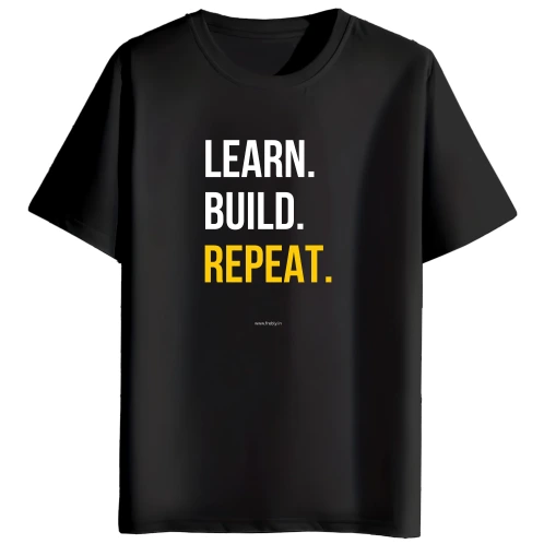 Learn Build Repeat Black Cotton T-Shirt front